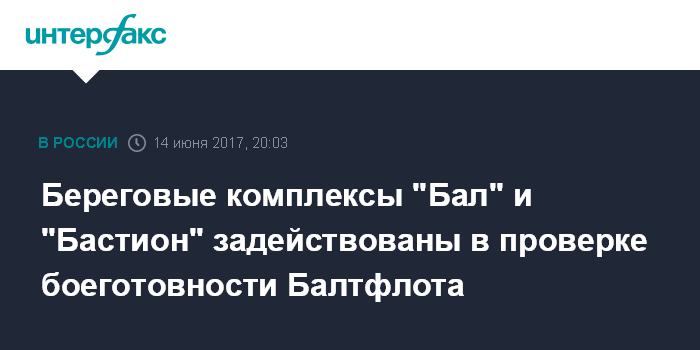 Москва. 14 июня. INTERFAX.RU - Передовые российские береговые ракетные комплексы "Бал" и "Бастион" в Калининградской области выполнили электронные пуски по надводным целям в ходе проверки боеготовности на Балтийском флоте, сообщили "Интерфаксу" в среду в пресс-службе Западного военного округа.