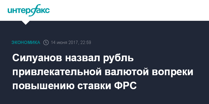 Москва. 14 июня. INTERFAX.RU - Повышение ставки ФРС США не несет рисков оттока капитала из РФ, рубль по-прежнему привлекателен для инвесторов, считает глава Минфина Антон Силуанов.