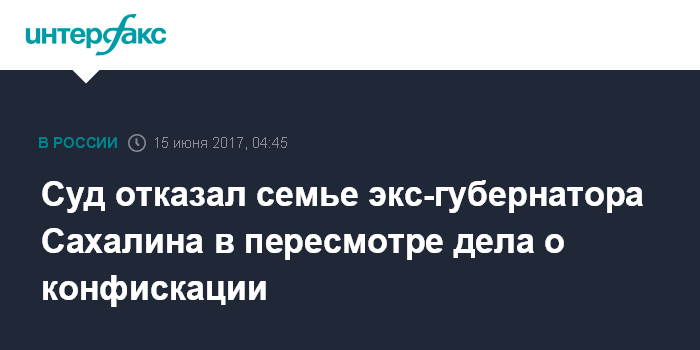 Суд отказал семье экс-губернатора Сахалина в пересмотре дела о конфискации