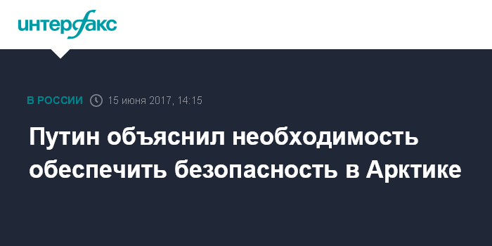 Москва. 15 июня. INTERFAX.RU - Президент РФ Владимир Путин заявил, что Россия намерена обеспечить свой суверенитет над арктическими территориями, а также безопасность в этом регионе, учитывая наращивание военных потенциалов США.