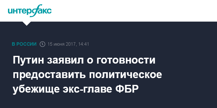 Путин добавил, что "если в этой связи против него (Дж.Коми - ИФ) будут обращены какие-то преследования, мы и ему готовы будем предоставить политическое убежище в России".