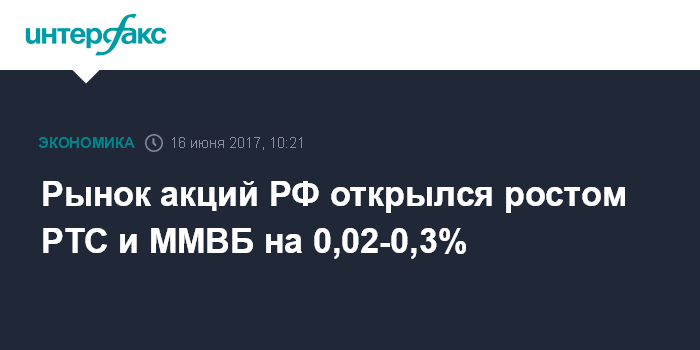 Москва. 16 июня. INTERFAX.RU - Рынок акций РФ открылся в пятницу ростом рублевых цен blue chips на фоне стабилизации нефти после отката, индексы РТС и ММВБ за минуту торгов прибавили 0,02-0,3%.