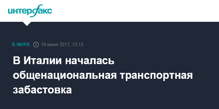 Москва. 16 июня. INTERFAX.RU - Общенациональная транспортная забастовка началась в ряде городов Италии, она затронет многие транспортные узлы, сообщает в пятницу сайт итальянской газеты Corriere della Sera.