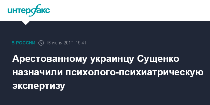 Москва. 16 июня. INTERFAX.RU - Арестованному в России по обвинению в шпионаже украинскому журналисту Роману Сущенко назначена психолого-психиатрическая экспертиза. Об этом сообщил его адвокат Марк Фейгин.