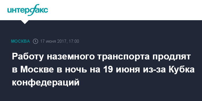 Работу наземного транспорта продлят в Москве в ночь на 19 июня из-за Кубка конфедераций