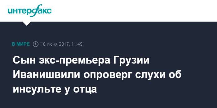 Москва. 18 июня. INTERFAX.RU - Сын бывшего премьер-министра Грузии миллиардера Бидзины Иванишвили Бера опроверг распространенную накануне информацию о том, что его отец перенес инсульт.
