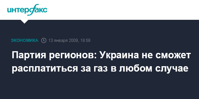 Москва. 13 января. INTERFAX.RU - Возможное подписание договора о поставках газа в Украину между ОАО "Газпром" и НАК "Нафтогаз Украины" еще не будет означать, что страна получит этот газ, поскольку не сможет за него расплатиться.