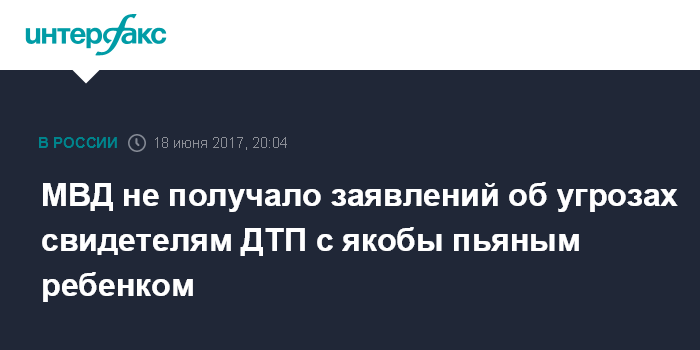МВД не получало заявлений об угрозах свидетелям ДТП с якобы пьяным ребенком