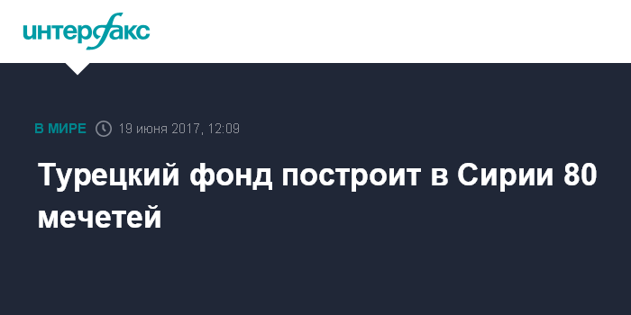Москва. 19 июня. INTERFAX.RU - Глава Управления по делам религии Турции Мехмет Гермез сообщил, что религиозный фонд страны построит 80 мечетей в четырех сирийских городах, передает в понедельник Анатолийские агентство новостей.