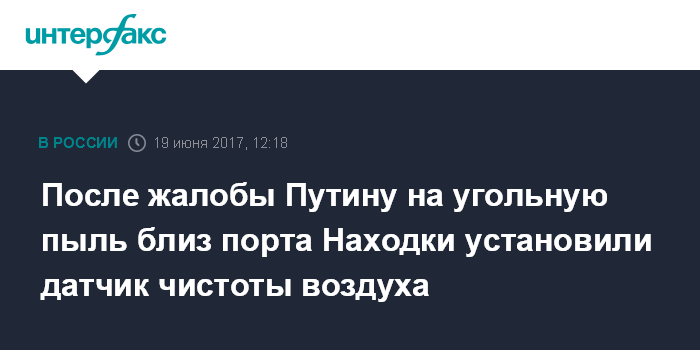 После жалобы Путину на угольную пыль близ порта Находки установили датчик чистоты воздуха