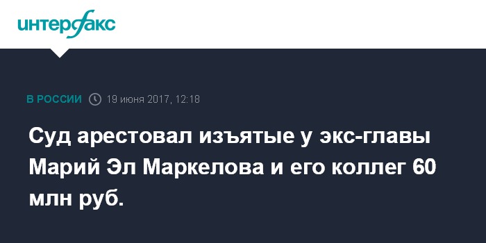 "В конце апреля Басманный суд наложил арест на сумму порядка 60 млн рублей, которые в разной валюте были изъяты из банковских ячеек и по месту жительства Леонида Маркелова, его друзей, знакомых и коллег", - сказал Севрук, представляющий интересы экс-главы Марий Эл.