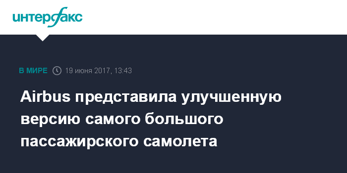 Москва. 19 июня. INTERFAX.RU - Airbus SE на парижском авиасалоне в Ле-Бурже представил новую версию авиалайнера A380plus. Об этом сообщает сайт европейского авиастроительного концерна.