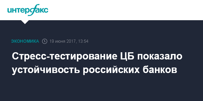 Москва. 19 июня. INTERFAX.RU - Проведенные регулятором стресс-тесты российских банков показали, что банковская система РФ остается устойчивой даже в стрессовых условиях, говорится в сообщении ЦБ.