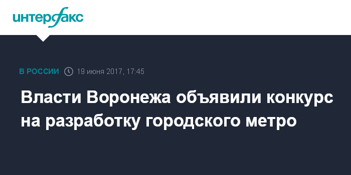 Москва. 19 июня. INTERFAX.RU - Администрация Воронежа объявила открытый конкурс на выполнение работ по технико-экономическому обоснованию создания системы скоростного рельсового пассажирского транспорта в городе, говорится на сайте госзакупок.