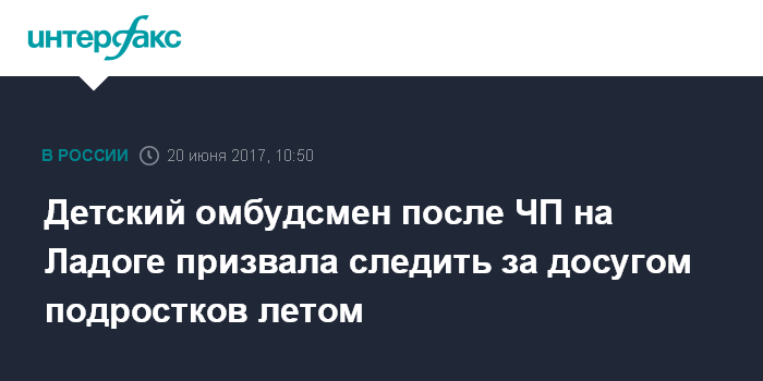 "Происшествие на Ладожском озере подтверждает необходимость того, чтобы взрослые, особенно вне организованных лагерей, уделяли особенное внимание организации досуга детей. Необходимо интересоваться тем, куда они планируют отправиться, и позаботиться об элементарных правилах безопасности", - заявила Кузнецова, слова которой приводит во вторник ее пресс-служба.