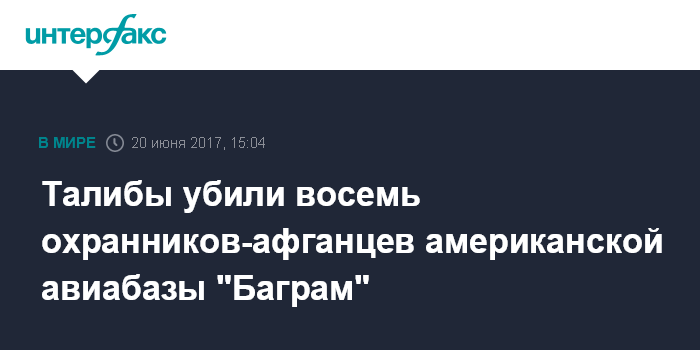 Москва. 20 июня. INTERFAX.RU - Боевики расстреляли группу охранников крупнейшей авиабазы США в республике "Баграм" к северу от Кабула.
