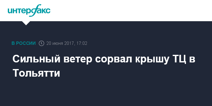 Москва. 20 июня. INTERFAX.RU - Порыв ветра сорвал во вторник кровлю с торгово-офисного центра на улице Дзержинского в Тольятти, пострадавших нет, говорится в сообщении на сайте администрации города.