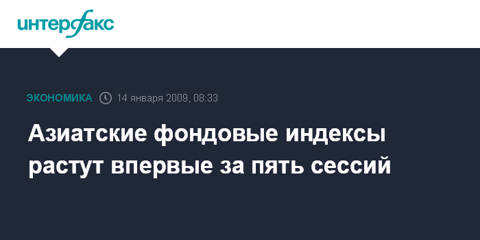 Москва. 14 января. INTERFAX.RU - Фондовые площадки Азии идут в среду на повышение впервые за 5 сессий на фоне подорожания нефти, вызвавшего увеличение котировок нефтяных компаний. Технологический сектор растет на ожиданиях, что слияния и сокращение затрат помогут сохранить прибыльность, сообщает агентство Bloomberg.