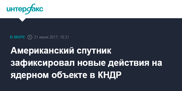 Москва. 21 июня. INTERFAX.RU - Разведывательный спутник США впервые за последние несколько недель зафиксировал новую активность на подземном ядерном объекте в КНДР, сообщает в среду американский телеканал CNN со ссылкой на двух лиц, знакомых с ситуацией.