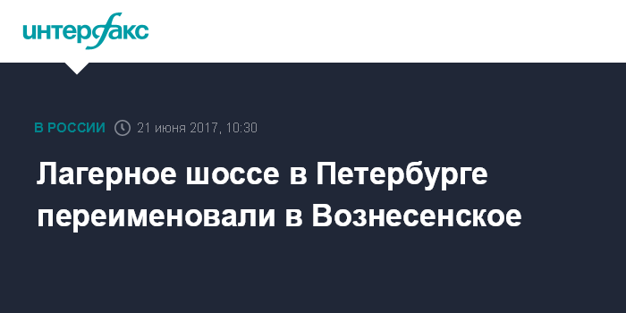 Лагерное шоссе в Петербурге переименовали в Вознесенское