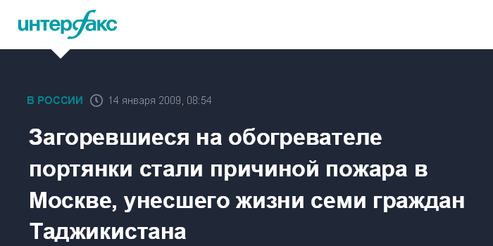 Загоревшиеся на обогревателе портянки стали причиной пожара в Москве, унесшего жизни семи граждан Таджикистана
