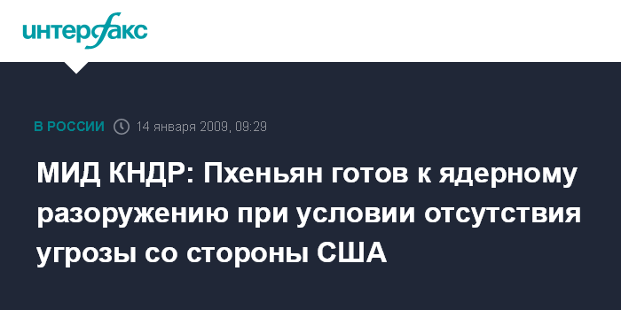 Москва. 14 января. INTERFAX.RU - Северная Корея готова отказаться от ядерного оружия лишь в том случае, если США устранят ядерную опасность Северной Корее и снимут "ядерный зонтик" с Южной Кореи, заявил во вторник официальный представитель МИД КНДР.