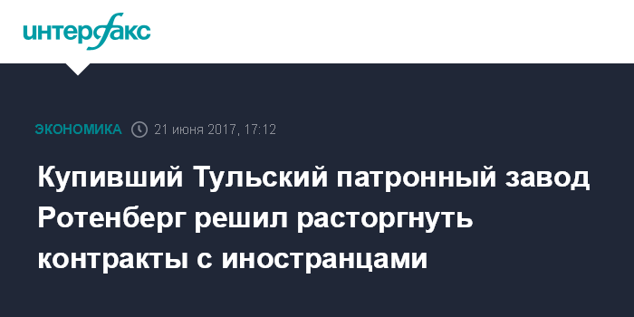 Купивший Тульский патронный завод Ротенберг решил расторгнуть контракты с иностранцами