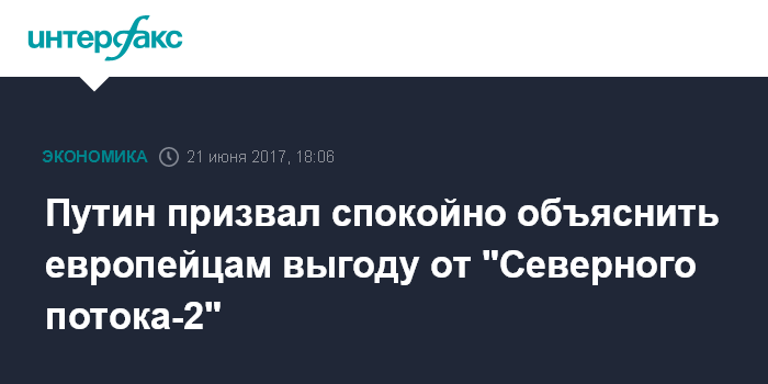 Москва. 21 июня. INTERFAX.RU - Президент РФ Владимир Путин заявил, что проект "Северный поток" имеет все шансы на успех, и призвал спокойно объяснять всем партнерам выгоду этого проекта для Европы.