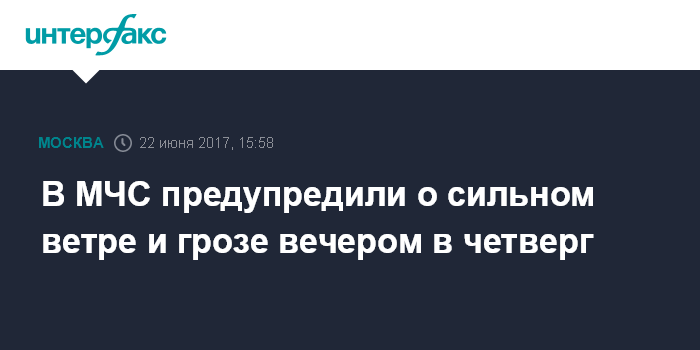 Москва. 22 июня. INTERFAX.RU - Гроза, дождь и сильный ветер ожидаются в Москве вечером в четверг, сообщили "Интерфаксу" в пресс-службе столичного главка МЧС.