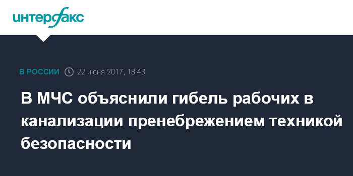 В МЧС объяснили гибель рабочих в канализации пренебрежением техникой безопасности
