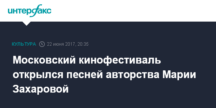 Москва. 22 июня. INTERFAX.RU - На открытии 39-го Московского международного кинофестиваля (ММКФ), выпавшем на День памяти и скорби, прозвучала песня "Верните память", написанная официальным представителем МИД РФ Марией Захаровой.