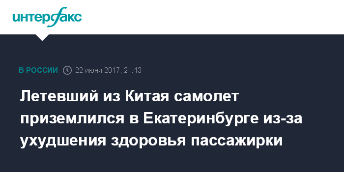 Летевший из Китая самолет приземлился в Екатеринбурге из-за ухудшения здоровья пассажирки