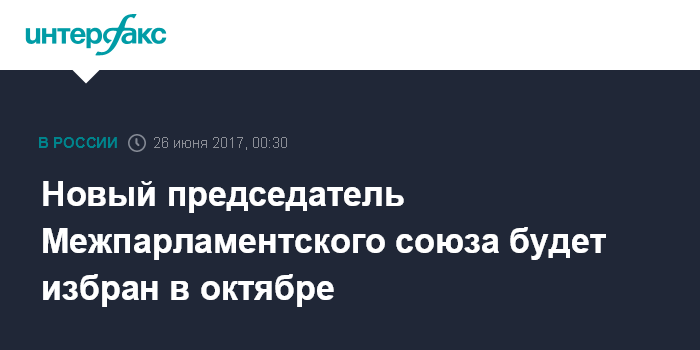 Москва. 26 июня. INTERFAX.RU - Следующий председатель Межпарламентского союза (МПС) будет избираться в октябре на ассамблее этой организации в Санкт-Петербурге, сообщил глава Комитета Совета Федерации по международным делам Константин Косачев.