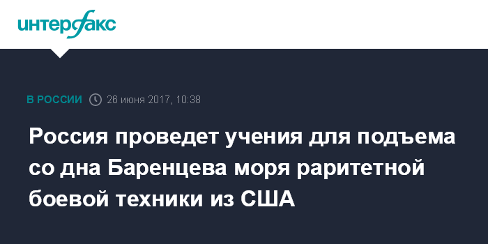 Россия проведет учения для подъема со дна Баренцева моря раритетной боевой техники из США