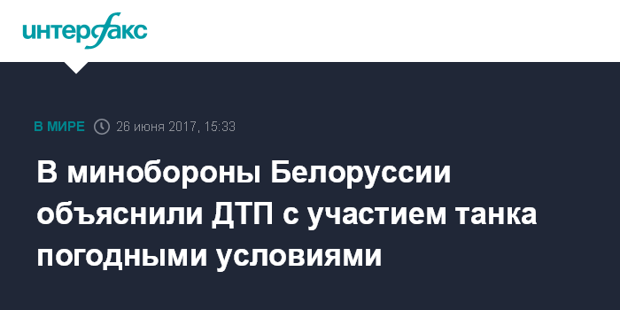 Москва. 26 июня. INTERFAX.RU - Инцидент с танком, произошедший в субботу во время репетиции парада в Минске, был обусловлен сложными погодными и дорожными условиями, заявил начальник управления информации - пресс-секретарь главного управления идеологической работы минобороны Белоруссии Владимир Макаров.