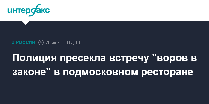 Москва. 26 июня. INTERFAX.RU - Сотрудники главного управления уголовного розыска (ГУУР) МВД России совместно с коллегами из других подразделений пресекли встречу "воров в законе" в ресторане в Московской области, сообщила пресс-служба МВД РФ.