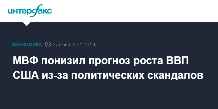 Москва. 27 июня. INTERFAX.RU - Международный валютный фонд во вторник ухудшил прогнозы роста экономики США из-за политических скандалов, преследующих администрацию президента Дональда Трампа с начала года.