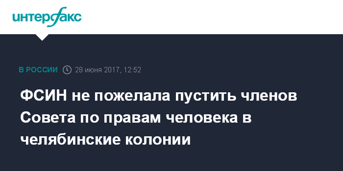 Москва. 28 июня. INTERFAX.RU - Членам Совета по правам человека при президенте не удалось попасть ни в одно учреждение Федеральной службы исполнения наказаний на территории Челябинской области, сообщил глава СПЧ Михаил Федотов.