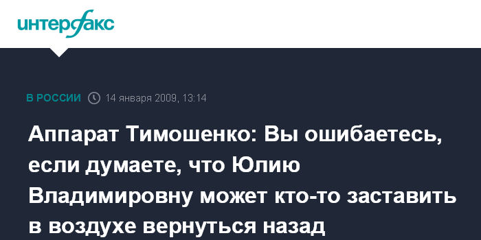 Аппарат Тимошенко: Вы ошибаетесь, если думаете, что Юлию Владимировну может кто-то заставить в воздухе вернуться назад
