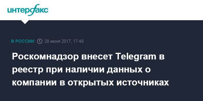 Ранее в среду владелец Telegram Павел Дуров предложил Роскомнадзору взять данные о мессенджере из открытых источников для включения в реестр организаторов распространения информации, однако предупредил, что не будет выполнять законы, не совместимые с защитой частной жизни и политикой конфиденциальности компании. Перед этим глава Роскомнадзора Жаров заявил, что у ведомства нет цели получить доступ к личной переписке пользователей Telegram, и все, чего оно ждет от Telegram для выполнения закона - это предоставление информации о компании.