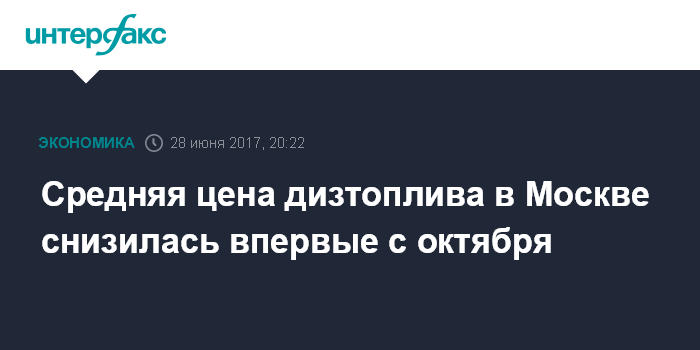 Москва. 28 июня. INTERFAX.RU - Средние цены на дизтопливо в Москве на прошлой неделе впервые за восемь месяцев снизились на 3 копейки, до 38,31 руб./л, следует из материалов Московской топливной ассоциации. Последнее снижение средневзвешенных цен на дизтопливо в московском регионе наблюдалось в середине октября 2016 года - тогда оно составило всего одну копейку.