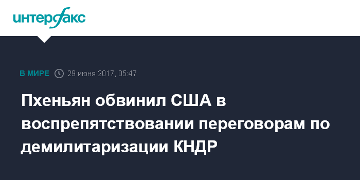 Москва. 29 июня. INTERFAX.RU - Заместитель постпреда КНДР при ООН Ким Ин Рен в Совете безопасности всемирной организации обвинил США в том, что оказываемое ими на Пхеньян давление не способствуют переговорам по ракетно-ядерной программе Северной Кореи.