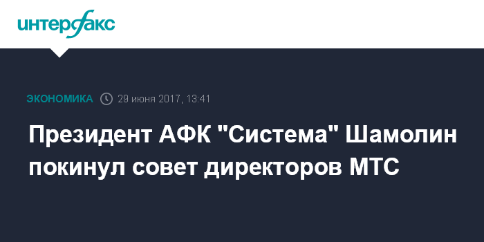 Президент АФК "Система" Шамолин покинул совет директоров МТС