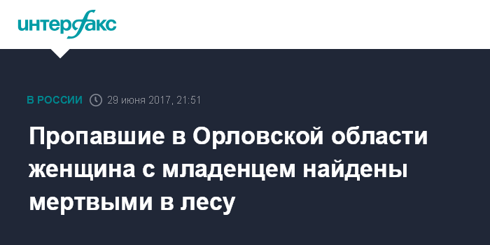 Как сообщает пресс-служба главного управления МВД по Орловской области, рано утром 29 июня к полицейским и спасателям обратился мужчина, чья 32-летняя жена и 6-месячный сын пропали. По его словам, они семьей ехали в соседнюю область и остановились отдохнуть у леса. Когда мужчина проснулся, то не обнаружил супруги и младенца. Старшие дети пояснили, что мать ушла, забрав малыша. Самостоятельно отыскать их не удалось.