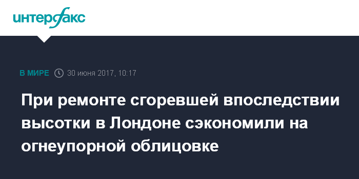 При ремонте сгоревшей впоследствии высотки в Лондоне сэкономили на огнеупорной облицовке