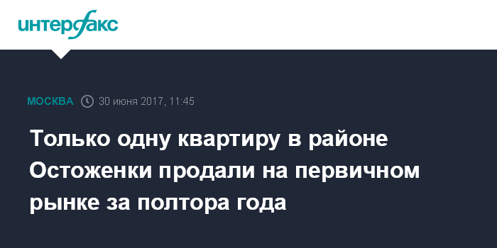 Москва. 30 июня. INTERFAX.RU - Одну квартиру в районе Остоженки в Москве продали на первичном рынке элитного жилья за полтора года, сообщает пресс-служба Contact Real Estate.