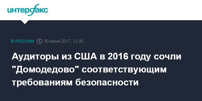 Аудиторы из США в 2016 году сочли "Домодедово" соответствующим требованиям безопасности