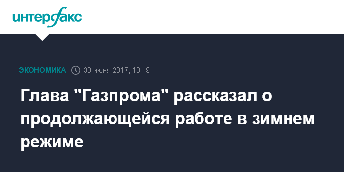 Москва. 30 июня. INTERFAX.RU - "Газпром" отмечает небывало холодную погоду в начале 2017 года, которая заставляла его работать в зимнем режиме. "Я уверен, что мы с вами встретимся в самое ближайшее время и поговорим о новых рекордах поставок газа в предстоящий осенне-зимний период", - отметил Миллер.