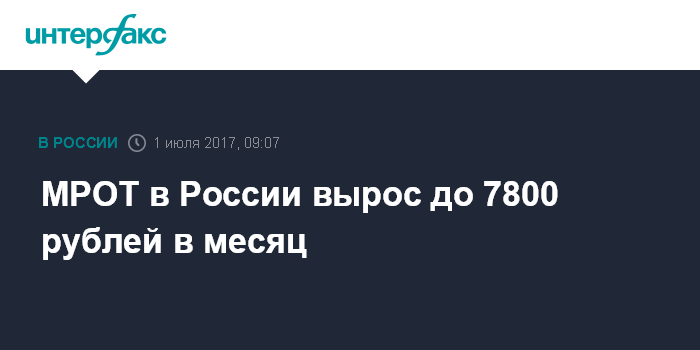 Москва. 1 июля. INTERFAX.RU - С 1 июля в России минимальный размер оплаты труда (МРОТ) повышается на 300 рублей (с 7500 до 7800 рублей), что, как рассчитывают в Минтруде, должно увеличить спрос на отечественные товары и сократить сектор экономики с "серыми" зарплатами.