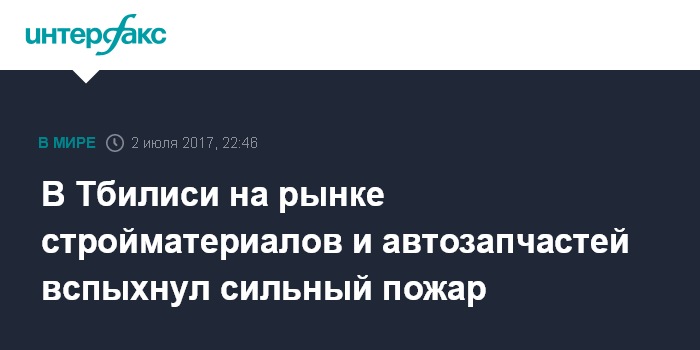 Москва. 2 июля. INTERFAX.RU - В Тбилиси в воскресенье вечером возник сильный пожар на территории одного из крупнейших рынков "Элиава".